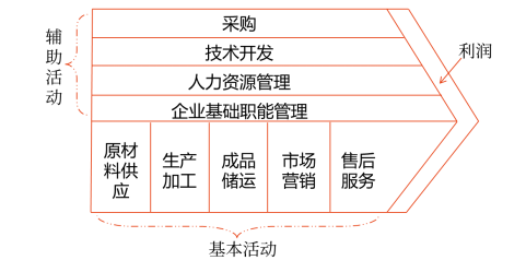 輔助活動(dòng):指用以支持基本活動(dòng)而且內(nèi)部之間又相互支持的活動(dòng),包括采購(gòu)、技術(shù)開發(fā)、人力資源管理和企業(yè)基礎(chǔ)職能管理。