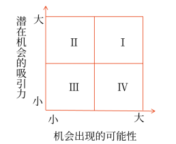Ⅱ(大機(jī)會小概率):企業(yè)暫時無法利用這些機(jī)會,機(jī)會一旦出現(xiàn)會給企業(yè)帶來潛在利益 | |