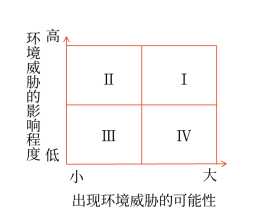 Ⅰ(高威脅大概率):企業(yè)應(yīng)高度重視,必須嚴(yán)密監(jiān)視和預(yù)測環(huán)境的發(fā)展變化趨勢,積極采取相應(yīng)的對策 | |