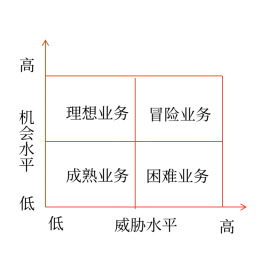 冒險業(yè)務(wù)(高機(jī)會高威脅):機(jī)會與危險同在,利益與風(fēng)險并存,企業(yè)應(yīng)當(dāng)進(jìn)行全面分析,慎重抉擇,爭取利益 | |