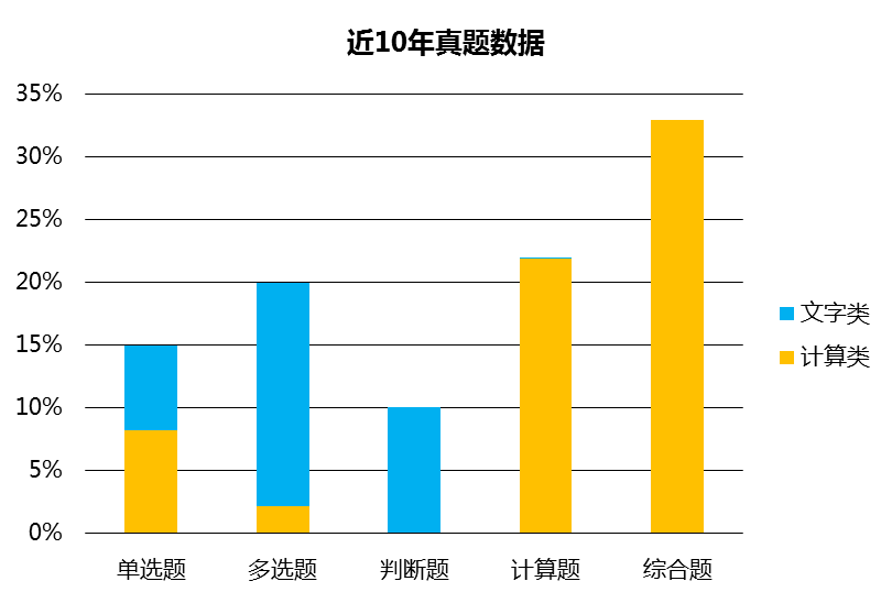 【提示】多選題和判斷題,雖然文字類考題居多,但是得分率卻是最低的,因?yàn)樗鼈兛疾樘媪?。所以,如果您試圖通過(guò)“抓重點(diǎn)”等方式考前突擊,那么就必須要保證其他計(jì)算類題目的正確率,而這一點(diǎn),要通過(guò)平時(shí)大量的題目練習(xí)做保障!結(jié)論:突擊不可取。