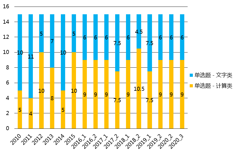 客觀題 | 單項(xiàng)選擇題 | 10題 × 1.5分 | 15分 |