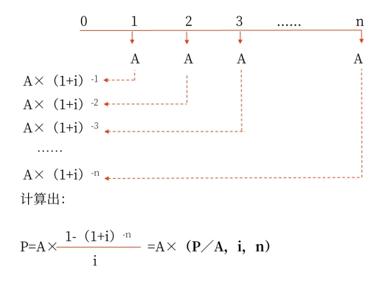 普通年金現(xiàn)值,是指一定時(shí)期內(nèi)每期期末等額收付款項(xiàng)的復(fù)利現(xiàn)值之和。普通年金現(xiàn)值的計(jì)算實(shí)際上就是已知年金A,求普通年金現(xiàn)值P。