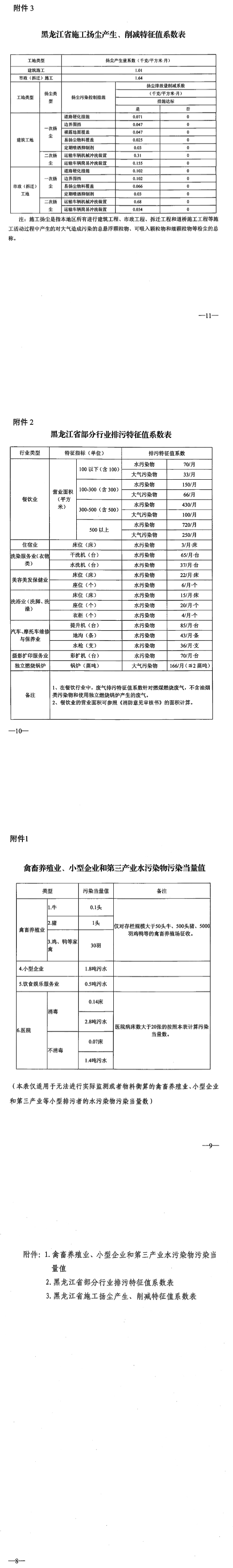 納稅人沒有安裝水表等設(shè)施,無法確定實(shí)際用水量的,可按本公告《黑龍江省部分行業(yè)排污特征值系數(shù)表》規(guī)定的排污特征值系數(shù)作為污染當(dāng)量數(shù)。