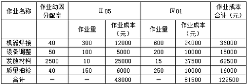 假設(shè)經(jīng)作業(yè)分析,該企業(yè)根據(jù)各項(xiàng)作業(yè)的成本動(dòng)因性質(zhì)劃分了機(jī)器焊接、設(shè)備調(diào)整、發(fā)放材料和質(zhì)量抽檢四項(xiàng)作業(yè);各作業(yè)動(dòng)因及作業(yè)成本發(fā)生額等有關(guān)資料如下表: