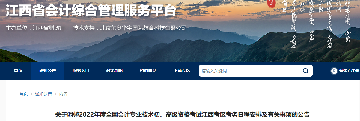 關(guān)于調(diào)整2022年度全國(guó)會(huì)計(jì)專業(yè)技術(shù)初、高級(jí)資格考試江西考區(qū)考務(wù)日程安排及有關(guān)事項(xiàng)的公告