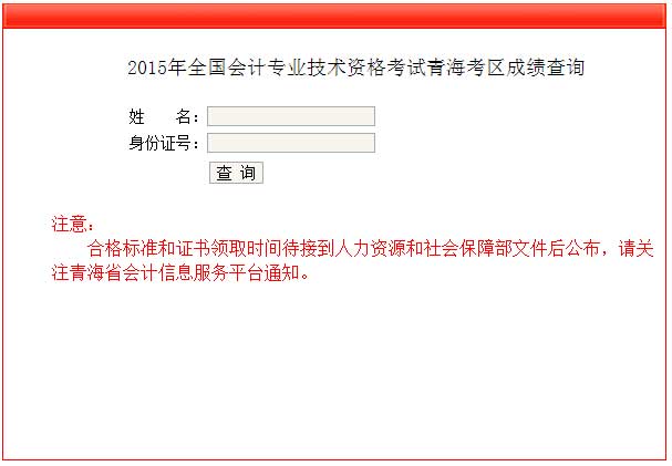 2015年度全國會計(jì)專業(yè)中、高級資格青?紖^(qū)考試成績數(shù)據(jù)已下發(fā)到我省,現(xiàn)予以公布,查詢網(wǎng)址:https://qhcz.gov.cn/kjcj.aspx。