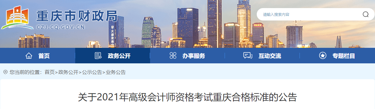 根據(jù)財政部會計資格評價中心《關(guān)于下發(fā)2021年度全國會計技術(shù)高級資格考試成績等有關(guān)事項的通知》(會評【2021】12號)精神,2021年度會計專業(yè)技術(shù)高級資格考試成績已在“全國會計資格評價網(wǎng)”上公布??忌蛇M“重慶市財政局”官網(wǎng)“會計之家”查詢成績。根據(jù)我市會計專業(yè)人員的考試情況,2021年我市合格標準按60分執(zhí)行。