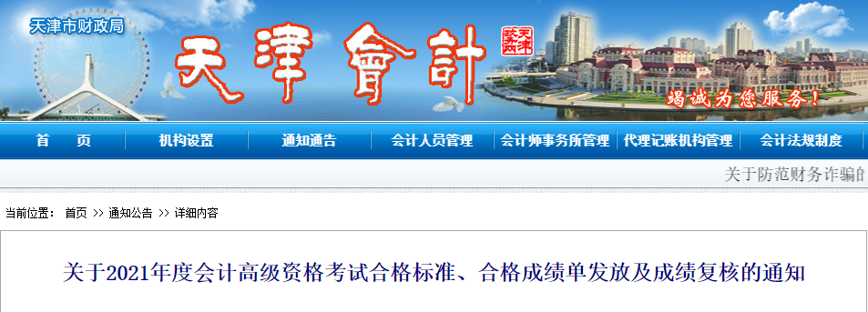 天津2021年度會計專業(yè)技術(shù)高級資格考試合格標準已公布