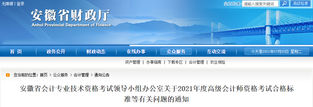 安徽2021年高級(jí)會(huì)計(jì)師考試成績(jī)合格標(biāo)準(zhǔn)