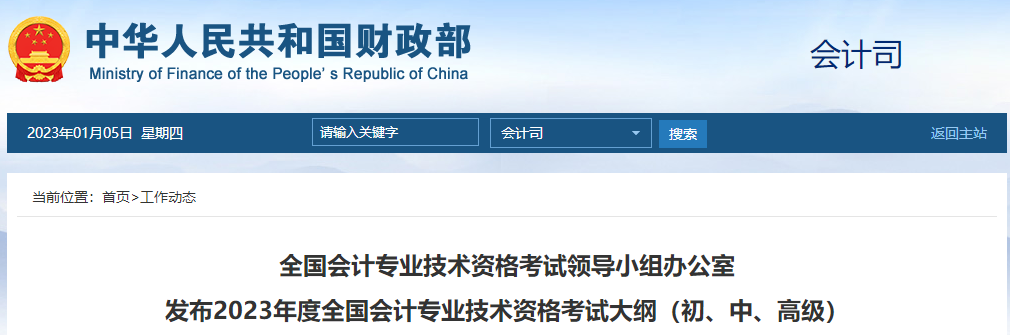 全國(guó)會(huì)計(jì)專業(yè)技術(shù)資格考試領(lǐng)導(dǎo)小組辦公室發(fā)布2023年度全國(guó)會(huì)計(jì)專業(yè)技術(shù)資格考試大綱(初、中、高級(jí))