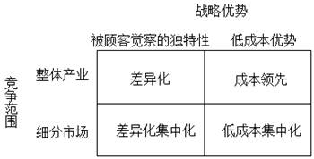 含義 | 也稱為低成本戰(zhàn)略,是指企業(yè)通過(guò)有效途徑降低成本,使企業(yè)的成本低于競(jìng)爭(zhēng)對(duì)手的成本,甚至是在同行業(yè)中最低的成本,從而獲取競(jìng)爭(zhēng)優(yōu)勢(shì)的一種戰(zhàn)略 |