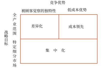 根據(jù)在市場競爭中獲得競爭優(yōu)勢的途徑,分為三種基本戰(zhàn)略:成本領(lǐng)先戰(zhàn)略、差異化戰(zhàn)略、集中化戰(zhàn)略。