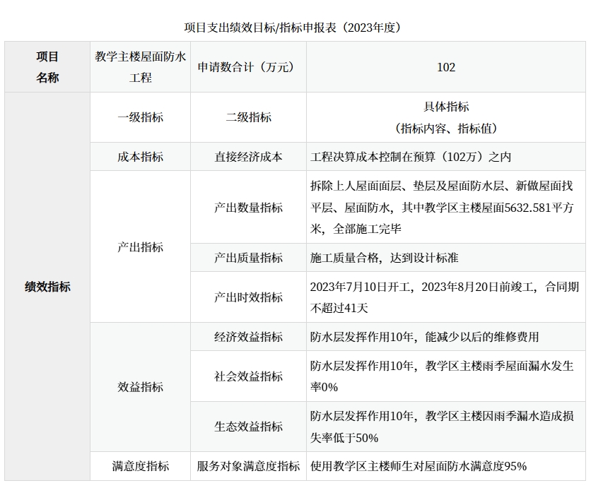 原則上每一項目均應(yīng)設(shè)置產(chǎn)出指標和效益指標。工程基建類項目和大型修繕及購置項目等應(yīng)設(shè)置成本指標,并逐步推廣到其他具備條件的項目。