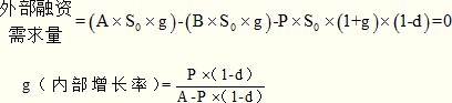 (1)銷售增長帶來新增的內(nèi)部留存融資額=S0(1+g)×P×(1-d)。