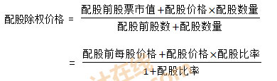 通常配股在股權(quán)登記日后要對股票進(jìn)行除權(quán)處理。除權(quán)后股票的理論除權(quán)基準(zhǔn)價格為: