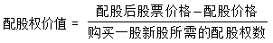 或:配股權(quán)價值=配股前每股價格-配股除權(quán)價格