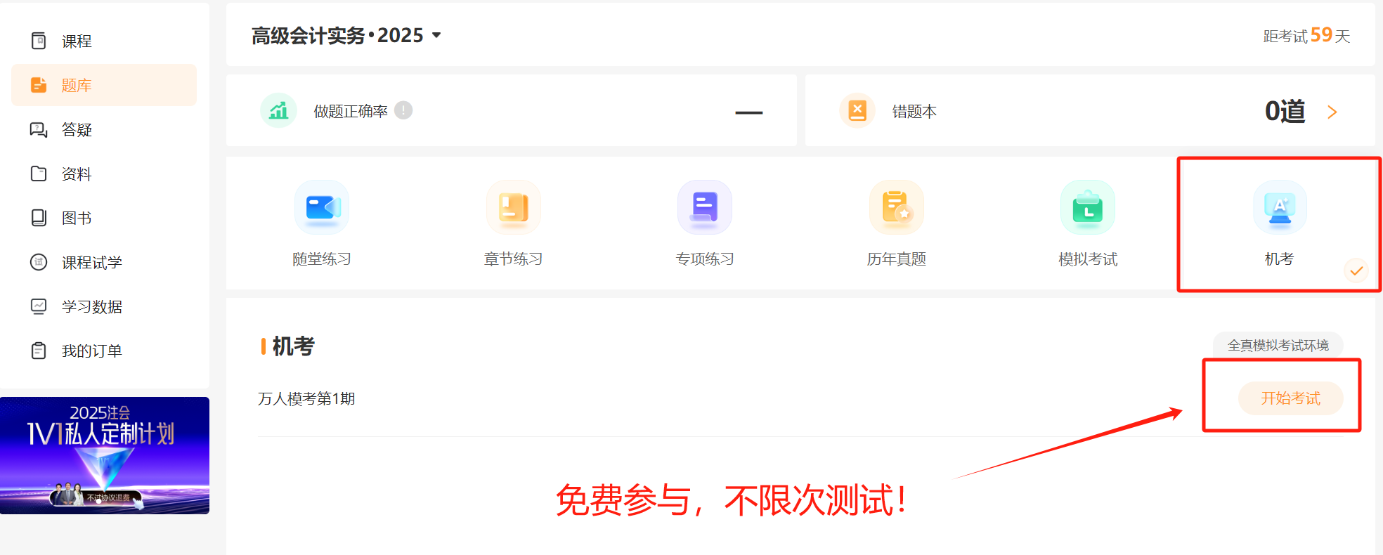2. 登錄電腦版東奧學(xué)習(xí)中心,找到高級會計實務(wù)-題庫-機考,參與考試!