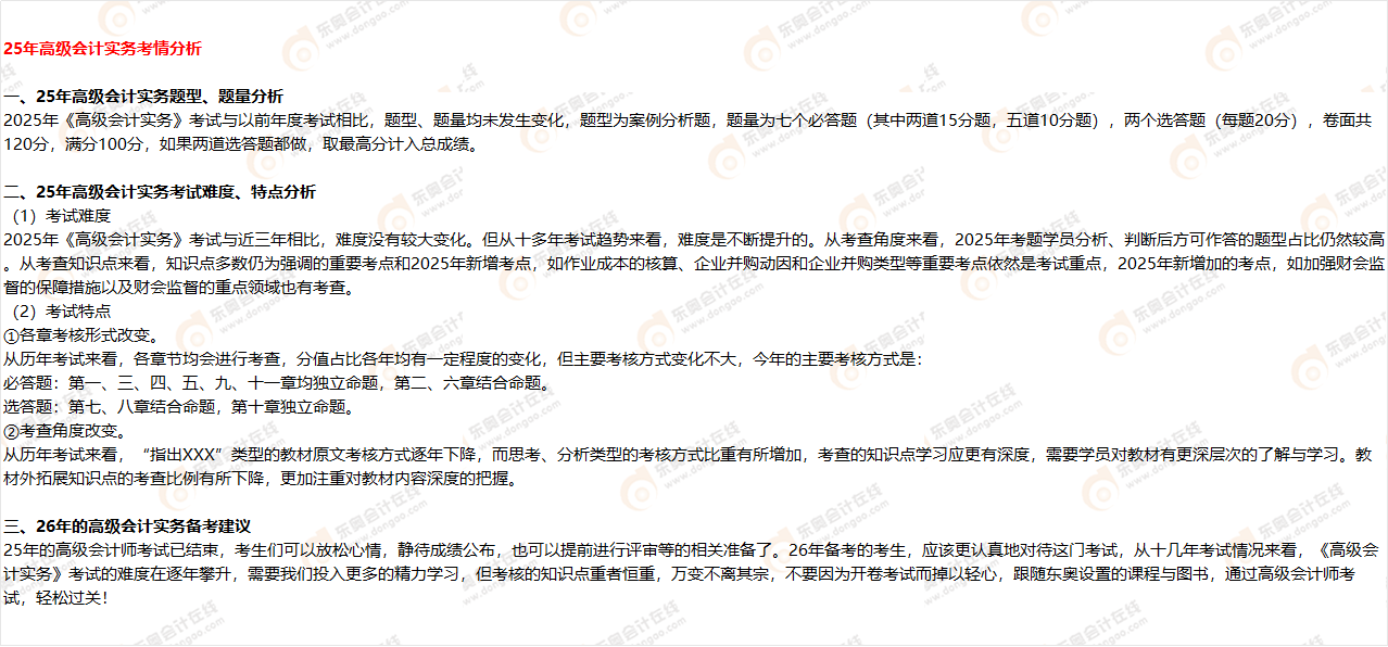 2025年高級(jí)會(huì)計(jì)師考試已經(jīng)結(jié)束。想必考生們對考試試題的考點(diǎn)所在及考試情況很好奇,東奧會(huì)計(jì)根據(jù)2025年高會(huì)考試試題情況,整理了考點(diǎn)分析及考情分析,讓我們一起了解具體情況吧!