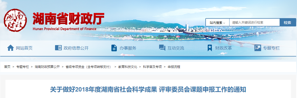 為充分調(diào)動和發(fā)揮全省廣大社會科學(xué)工作者的積極性和創(chuàng)造性,支持和鼓勵社會科學(xué)工作者潛心研究、出好成果,推動我省哲學(xué)社會科學(xué)繁榮發(fā)展,加快新型智庫建設(shè),經(jīng)研究,現(xiàn)決定開展2018年度湖南省社會科學(xué)成果評審委員會課題(以下簡稱課題)申報工作,并就有關(guān)事項通知如下: