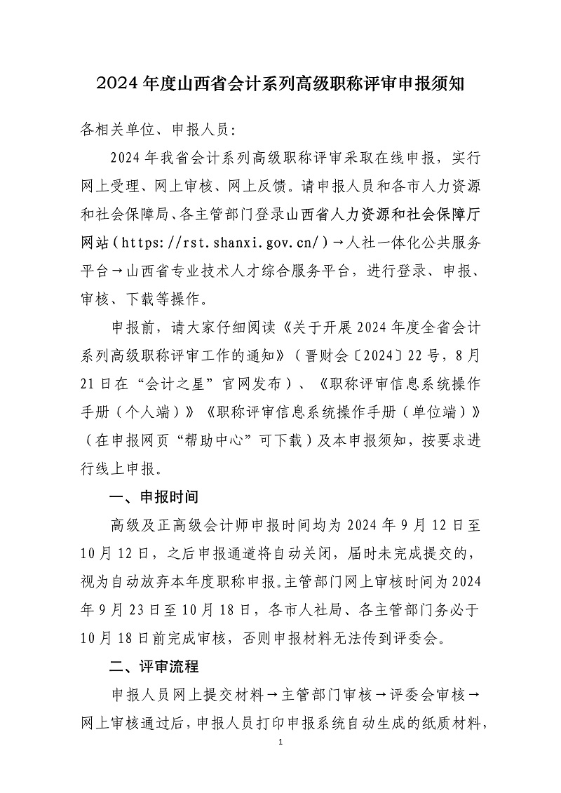 2024年度山西省會計系列高級職稱評審申報須知