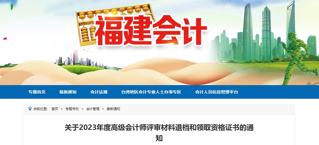 福建省2023年高級會計師評審材料退檔和領(lǐng)取資格證書的通知