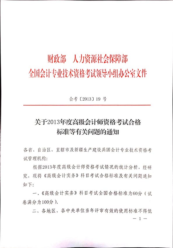 關(guān)于2013高會(huì)資格考試合格標(biāo)準(zhǔn)等有關(guān)問(wèn)題的通知