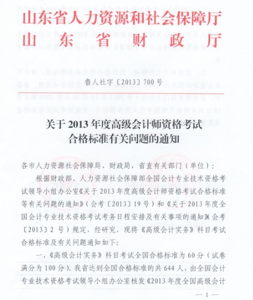 關(guān)于2013年度高級會計(jì)師資格考試合格標(biāo)準(zhǔn)有關(guān)問題的通知