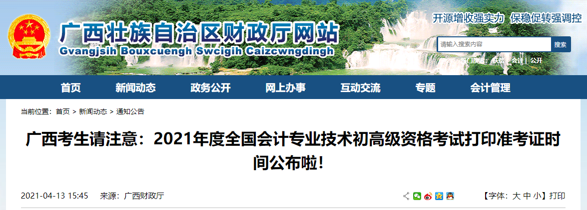 2021年度全國(guó)會(huì)計(jì)專業(yè)技術(shù)初級(jí)資格廣西考區(qū)考試時(shí)間定于2021年5月15日至5月19日、5月22日至5月23日舉行,高級(jí)資格考試定于2021年5月15日上午舉行。請(qǐng)我區(qū)廣大考生及時(shí)做好如下考前打印準(zhǔn)考證等準(zhǔn)備事項(xiàng):