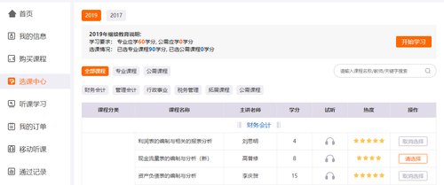 3. 選課流程:由于學(xué)員已經(jīng)在吉林會計網(wǎng)交完費,現(xiàn)在直接選課即可。如圖所示:課程后面相應(yīng)會有“請選擇”字樣,選擇的課程若是不想選了,可點擊“取消選擇”字樣。