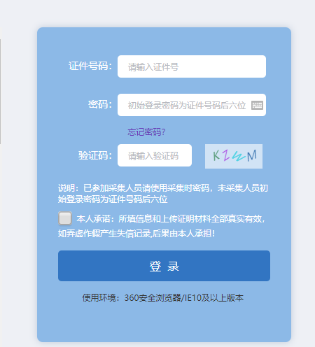 注:已采集人員請(qǐng)使用采集時(shí)密碼,未參加采集人員初始登錄密碼為證件號(hào)碼后六位。