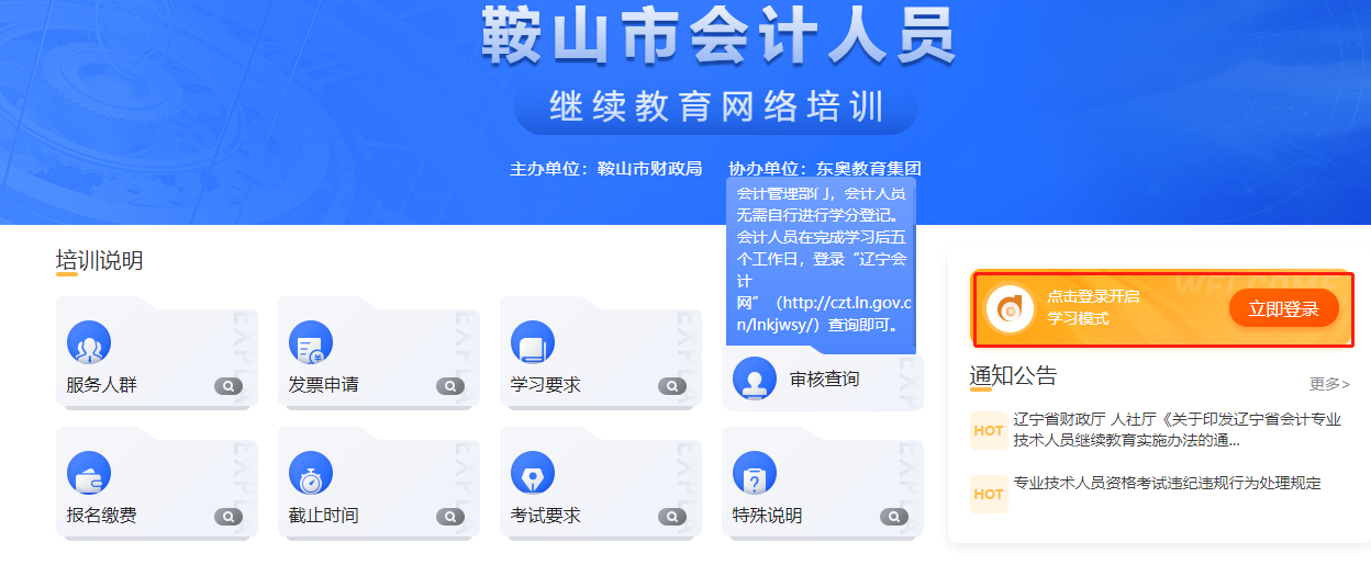 其二,學(xué)員也可以直接登錄鞍山市東奧繼教網(wǎng)站進(jìn)行登錄學(xué)習(xí),其網(wǎng)址為https://anshan.dongao.com/。