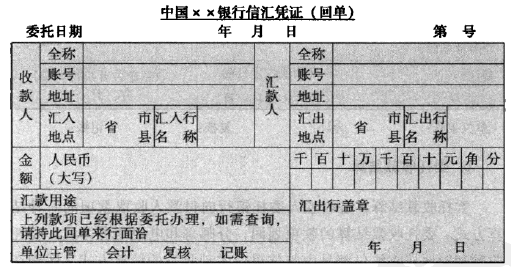 匯兌結(jié)算,是匯款人委托銀行將款項匯給外地收款人的結(jié)算方式。匯兌分為信匯和電匯兩種,通常適用于異地間的資金調(diào)撥、企業(yè)之間清理結(jié)算尾款和先款后貨的交易事項。匯兌結(jié)算安全、方便,又無金額起點,所以應(yīng)用較為廣泛。對于銷貨單位,如對購貨單位的信用狀況了解不夠,應(yīng)采用先款后貸的方式銷售。如先貨后款,可能出現(xiàn)貸款不能收回的情況,增加企業(yè)的結(jié)算風(fēng)險,所以應(yīng)慎重選擇。銀行信匯憑證格式如下圖所示。