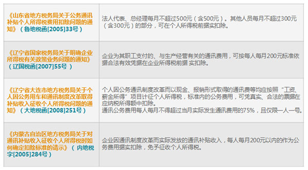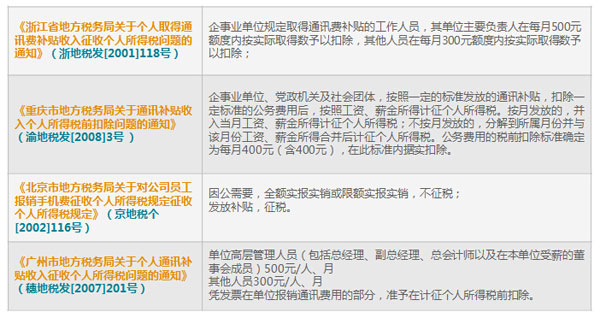 通訊費(fèi)補(bǔ)貼相關(guān)的各省市個(gè)稅政策