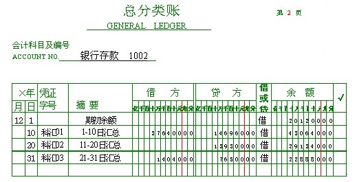 二、科目匯總表賬務(wù)處理程序的總賬登記