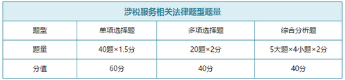 注冊稅務(wù)師涉稅服務(wù)相關(guān)法律題型和分值