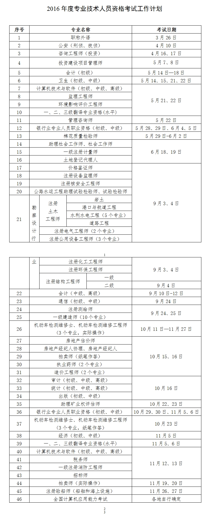 為進(jìn)一步做好專業(yè)技術(shù)人員資格考試的規(guī)劃與管理工作,經(jīng)與有關(guān)部門和相關(guān)考試管理機(jī)構(gòu)研究,現(xiàn)將2016年度專業(yè)技術(shù)資格考試計(jì)劃及有關(guān)問題通知如下: