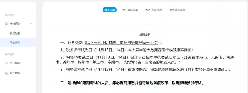 中國注冊稅務師協(xié)會〔2021〕第19號、21號、22號和25號公告中延期考試地區(qū)的報名人員不在此次申請范圍,相關(guān)人員敬請關(guān)注中稅協(xié)延期考試相關(guān)公告。