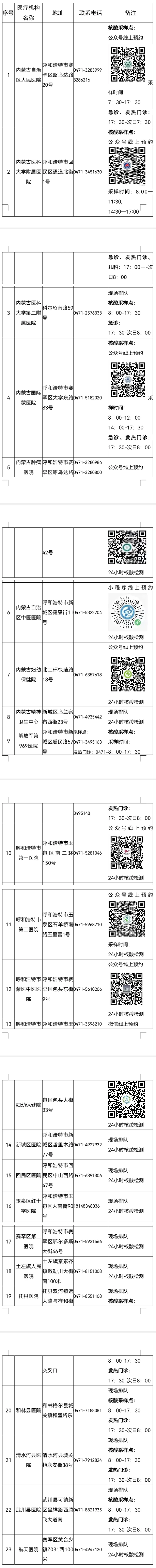 附:呼和浩特市開(kāi)展新冠病毒核酸檢測(cè)醫(yī)療機(jī)構(gòu)