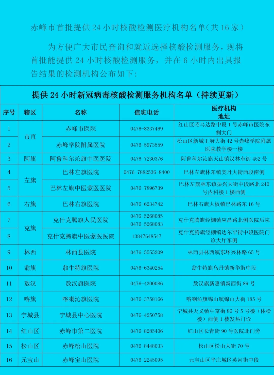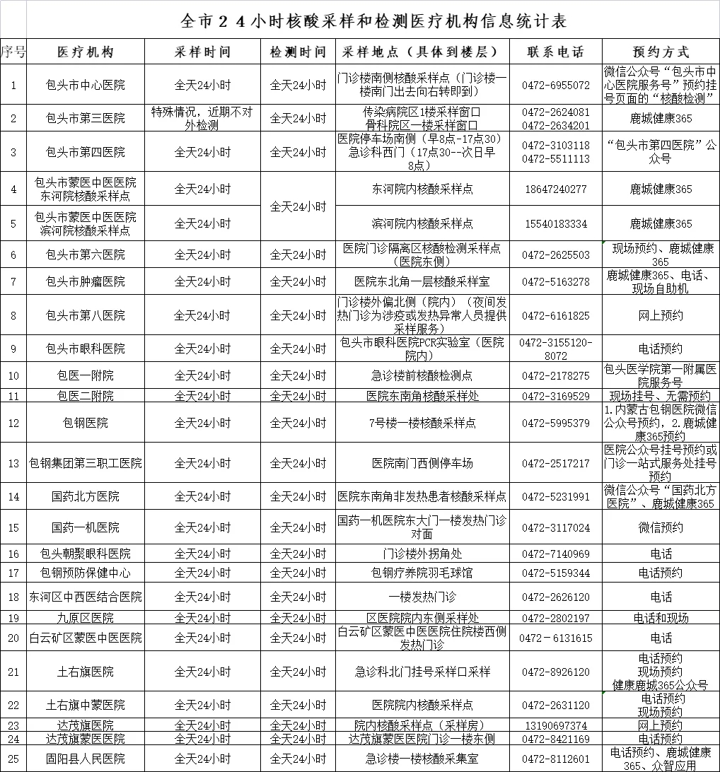 為更好的滿足群眾核酸檢測(cè)需求,提供優(yōu)質(zhì)高效的核酸采樣和檢測(cè)服務(wù),現(xiàn)將全市開(kāi)展24小時(shí)核酸采樣和檢測(cè)服務(wù)醫(yī)療機(jī)構(gòu)名單公布如下。請(qǐng)根據(jù)表中核酸檢測(cè)預(yù)約方式提前預(yù)約核酸檢測(cè)。