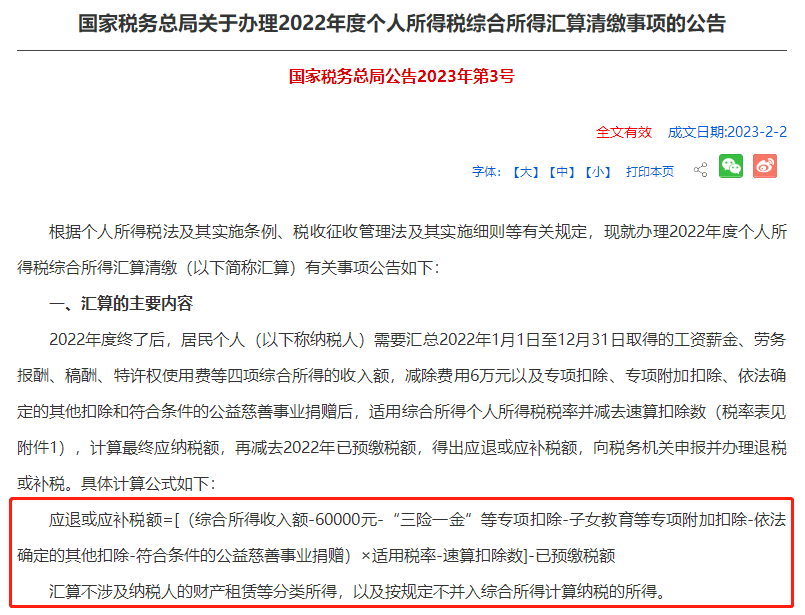 關(guān)于辦理2022年度個(gè)人所得稅綜合所得匯算清繳事項(xiàng)的公告