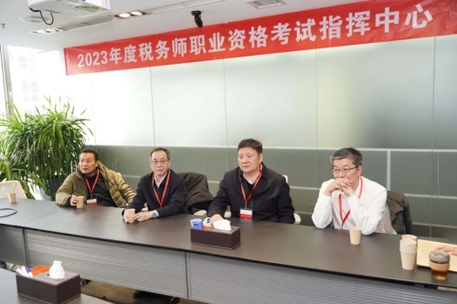 中稅協(xié)副會(huì)長(zhǎng)兼秘書長(zhǎng)鄭江平,副會(huì)長(zhǎng)謝濱,中稅協(xié)副會(huì)長(zhǎng)、北京市稅協(xié)會(huì)長(zhǎng)胡軍在稅務(wù)師考試指揮中心督促協(xié)調(diào)考試組織實(shí)施。