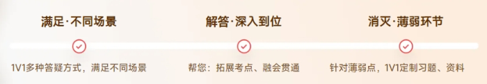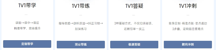 搭配1V1指導(dǎo)解題思路,搭建解題框架、提取關(guān)鍵點(diǎn);剖析錯(cuò)題原因,針對(duì)薄弱,定向補(bǔ)習(xí);糾正錯(cuò)誤習(xí)慣,1V1月考判卷,避免細(xì)節(jié)失分。