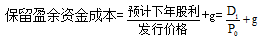 保留盈余和普通股一樣都是企業(yè)所有者權(quán)益,所以留存收益的資本成本與普通股資本成本計算方法一致,只不過不考慮籌資費用。