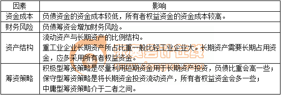 【東奧小編】2013年注冊稅務師考試時間已確定為2013年6月22日至23日,小編提醒廣大注稅考生各省市已開始陸續(xù)公布2013年注稅考試報名時間,要趁早復習,一步一步穩(wěn)紮穩(wěn)打,考試前才能從容不迫。現(xiàn)階段可以進入注稅第一輪復習,復習目標為熟悉所報科目每章節(jié)的知識點,消除陌生感,將較難知識點進行初步消化。以下是《財務與會計》科目第四章籌資管理第四節(jié)資金成本的知識點:資金結構的影響因素,供學員們參考。