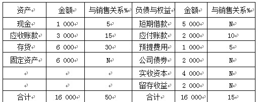 在表3-1中,N表示不變動(dòng),是指該項(xiàng)目不隨銷(xiāo)售額的變化而變化。