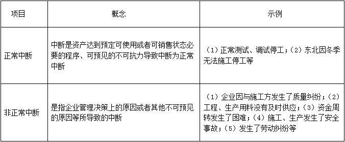 符合資本化條件的資產(chǎn)在購建或者生產(chǎn)過程中發(fā)生了非正常中斷,且中斷時(shí)間連續(xù)超過3個(gè)月的,應(yīng)當(dāng)暫停借款費(fèi)用的資本化。在中斷期間發(fā)生的借款費(fèi)用應(yīng)當(dāng)確認(rèn)為費(fèi)用,計(jì)入當(dāng)期損益,直至資產(chǎn)的購建或者生產(chǎn)活動(dòng)重新開始。如果中斷是所購建或者生產(chǎn)的符合資本化條件的資產(chǎn)達(dá)到預(yù)定可使用或者可銷售狀態(tài)必要的程序,借款費(fèi)用的資本化應(yīng)當(dāng)繼續(xù)進(jìn)行。