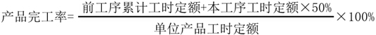 采用約當(dāng)產(chǎn)量比例法,確定期末在產(chǎn)品的完工程度是重要的一環(huán),一般是根據(jù)月末在產(chǎn)品的數(shù)量,用技術(shù)測(cè)定或其他方法來(lái)計(jì)算在產(chǎn)品的完工程度。如果企業(yè)具備較健全的產(chǎn)品工時(shí)定額資料,也可以按每道工序累計(jì)單位工時(shí)定額計(jì)算該工序的在產(chǎn)品完工程度,計(jì)算公式為: