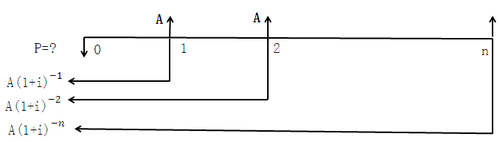 根據(jù)復(fù)利現(xiàn)值的計(jì)算公式,將每期期末年金A折現(xiàn)到第0期期初,然后再相加,求出P: