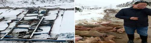 一則新聞:暴雪中壓死、凍死的生豬初步估計(jì)有500頭以上。說(shuō)起損失,“至少有1300萬(wàn)以上。